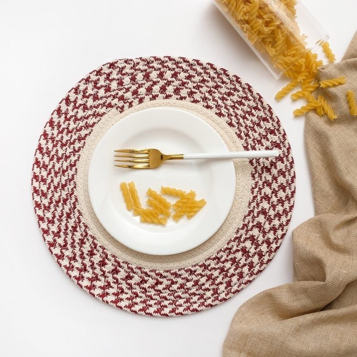 Салфетка декоративная «Доляна» цв.молочно-бордовый, 35*35 см, 100% хлопок