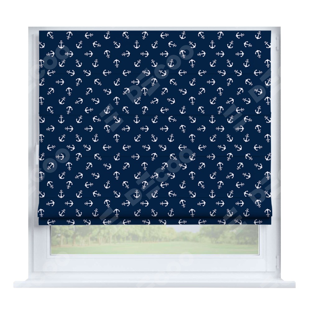 Римская штора производителя «Cortin», устанавливается на створку окна, пошита из ткани блэкаут с нанесением сублимационной печати «Морские якори». Штора шьётся по индивидуальным размерам, для данного типа римской шторы возможная ширина от 35 до 150 см., высота до 250 см.