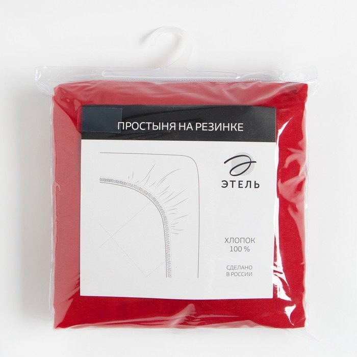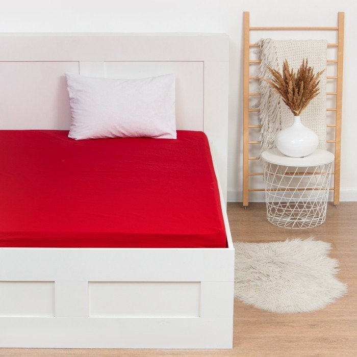 Простыня на резинке Этель, 160*200 + 25 см, красный, 100% хлопок, бязь