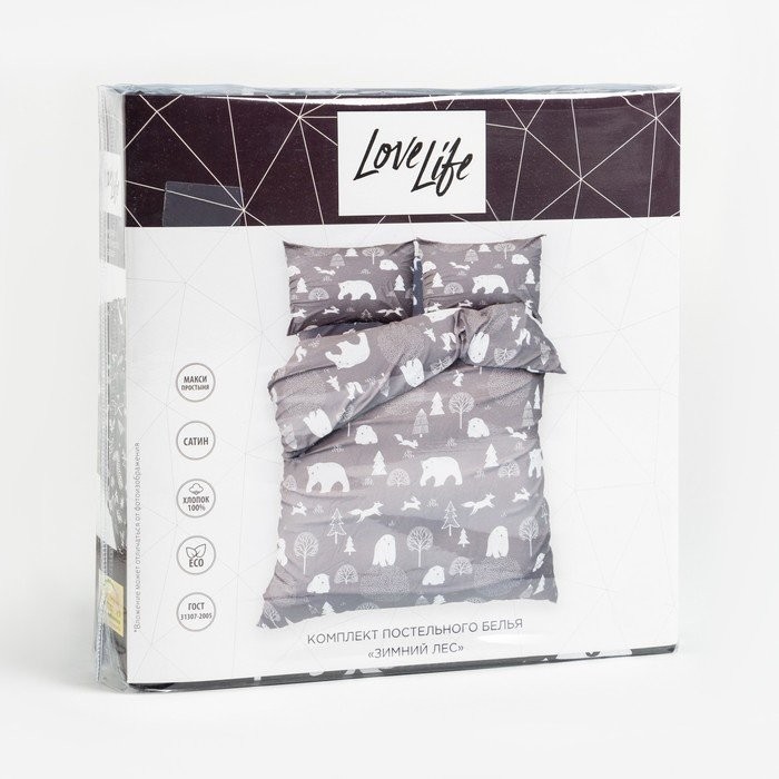 Постельное бельё LoveLife Евро «Зимний лес» 200×217 см, 225×240 см, 50×70 см-2шт, 100%хлопок, сатин