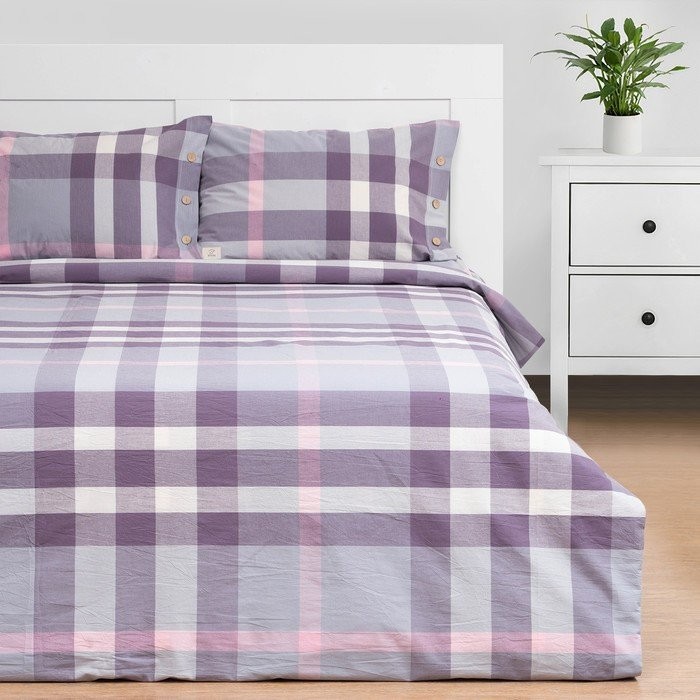 Постельное бельё Этель 1.5 сп «Клетка» 155×210 см, 160×240 см, 50×70−2шт, 100% жатый хлопок, 140гр/м2