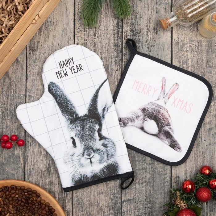 Набор кух. «Merry xmas» варежка-прихватка 20×28 см, прихватка 19×19 см, 100% хл