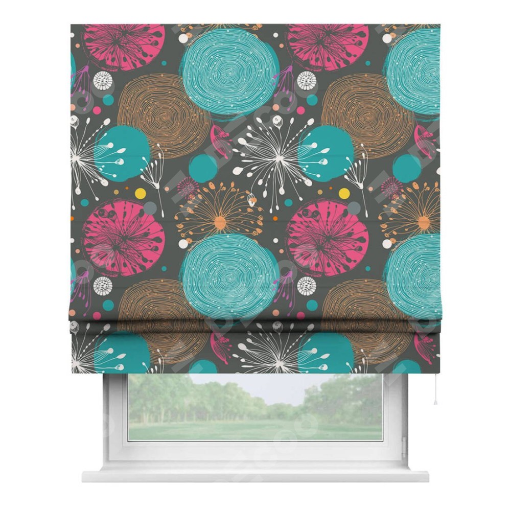 Римская штора производителя «Cortin», используется для проёма, пошита из ткани блэкаут с нанесением сублимационной печати «Милый гранж». Имеет универсальный механизм и подходит для монтажа: на потолок, на стену и в нишу.