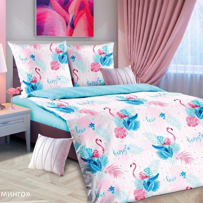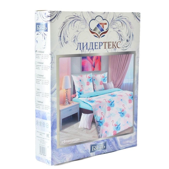 Постельное бельё 1,5сп ЛидерТекс Фламинго вклад 145×215, 150×215, 70×70 2шт, бязь 120гр/м хл100%