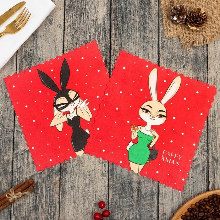 Набор салфеток для уборки Доляна «Xmas» 20×20 см-2 шт, микрофибра