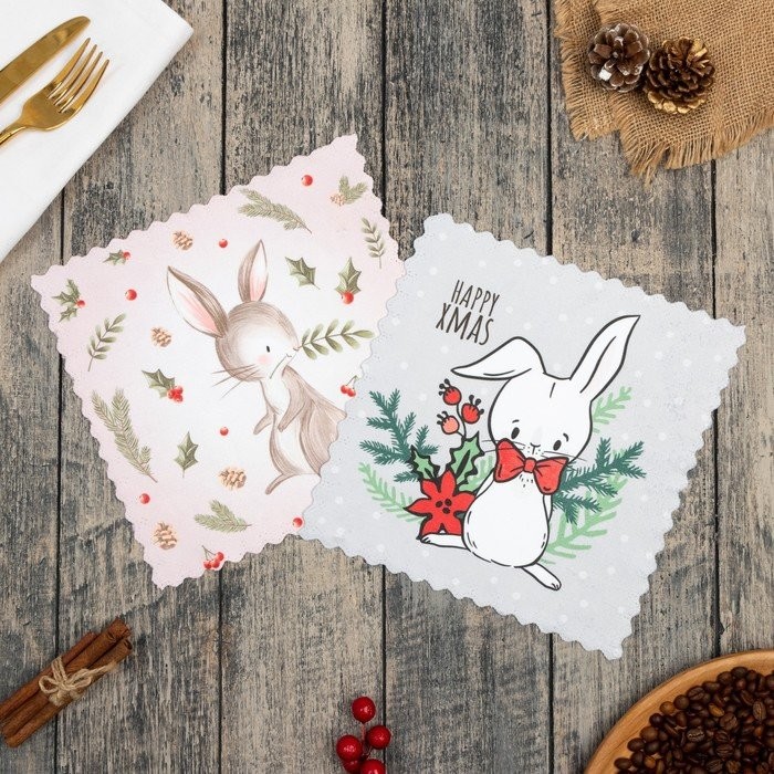 Набор салфеток для уборки Доляна «Happy xmas» 20×20 см-2 шт, микрофибра