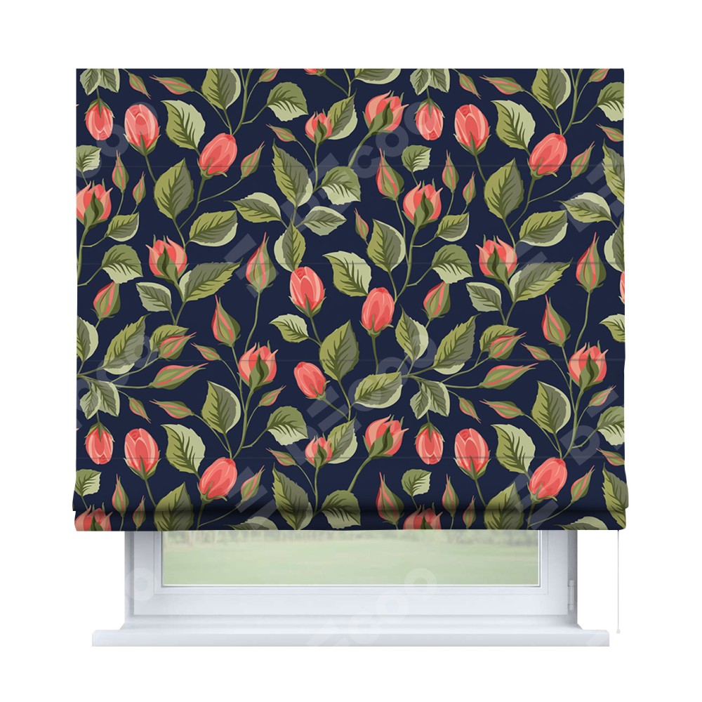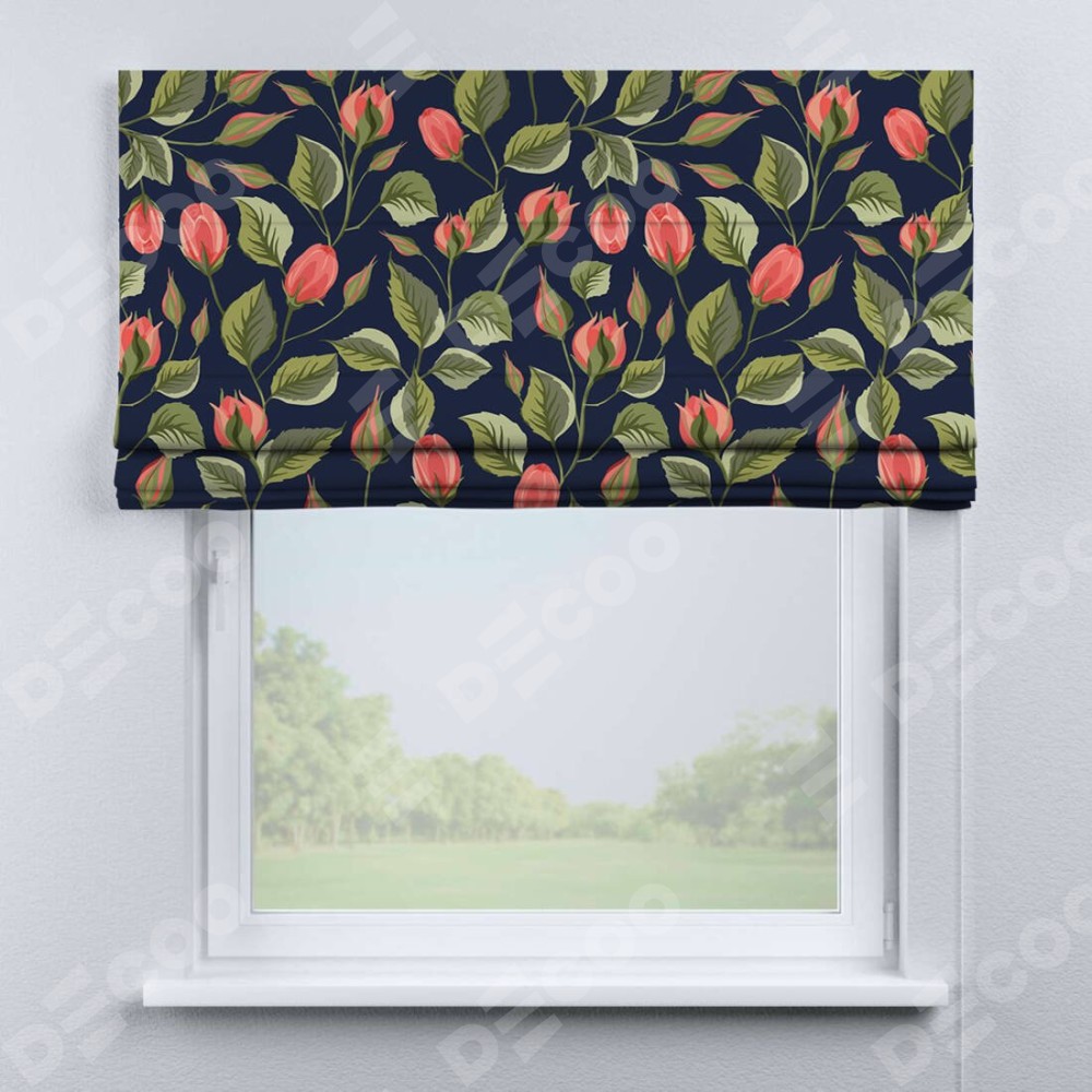Римская штора производителя «Cortin», используется для проёма, пошита из ткани блэкаут с нанесением сублимационной печати «Красная роза». Имеет универсальный механизм и подходит для монтажа: на потолок, на стену и в нишу.