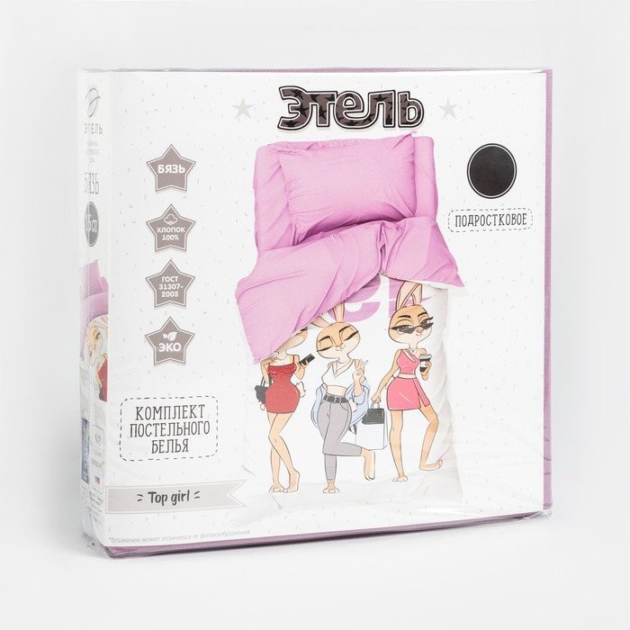 Постельное бельё Этель 1,5 сп «Top girl», 143×215 см, 150×214 см, 50×70 см -1 шт, 100% хлопок, бязь