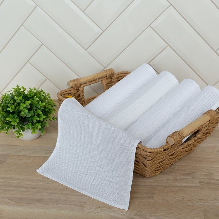 Салфетка для уборки 25×25 — 5 шт, белая вафля 200 гр, хлопок 100%