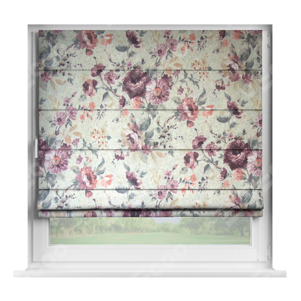 Римская штора производителя «Cortin», устанавливается на створку окна, пошита из ткани «Пионы». Штора шьётся по индивидуальным размерам, для данного типа римской шторы возможная ширина от 35 до 150 см., высота до 250 см.