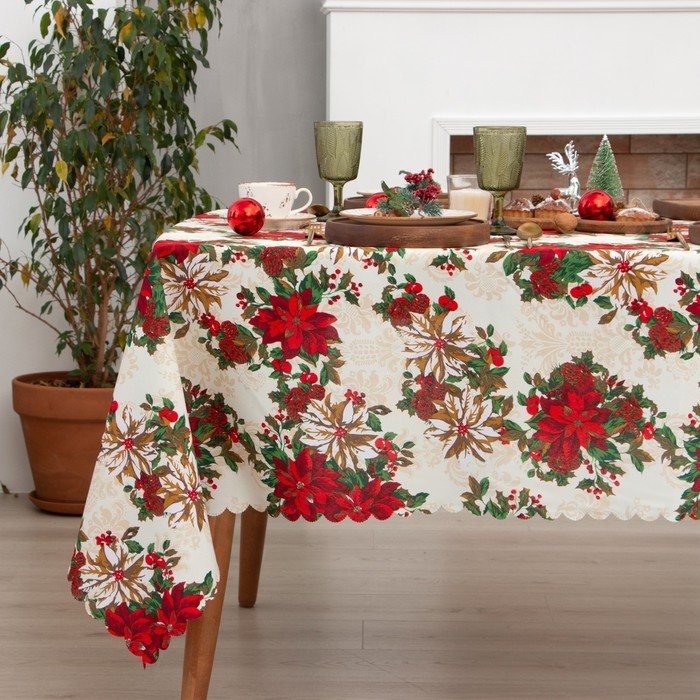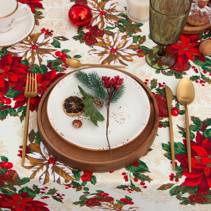 Скатерть Доляна «Новогодние украшения» 110×145 см, 100% п/э