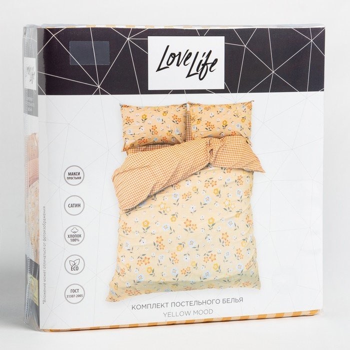 Постельное бельё LoveLife 2сп Yellow mood 175×215 см, 200×225 см, 50х70см-2шт, 100%хлопок, сатин, 125г/м