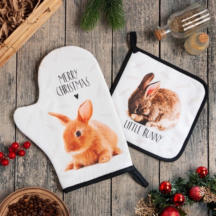 Набор кух. «Little bunny» варежка-прихватка 20×28 см, прихватка 19×19 см, 100% хл