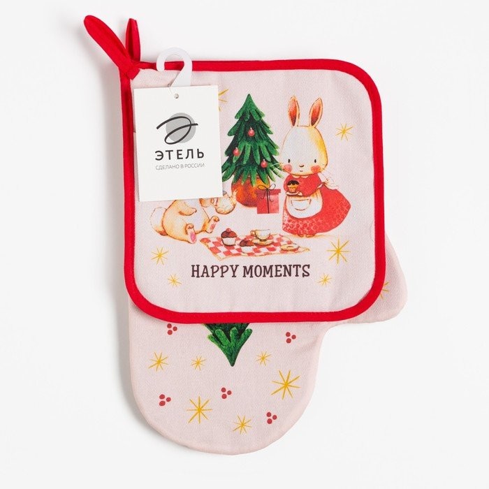 Набор кух. «Happy moments» варежка-прихватка 20×28 см, прихватка 19×19 см, 100% хл