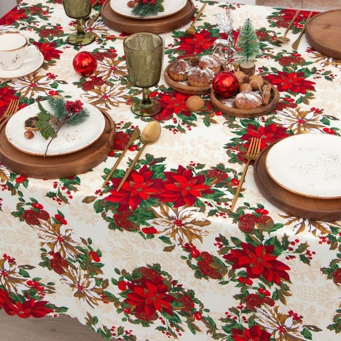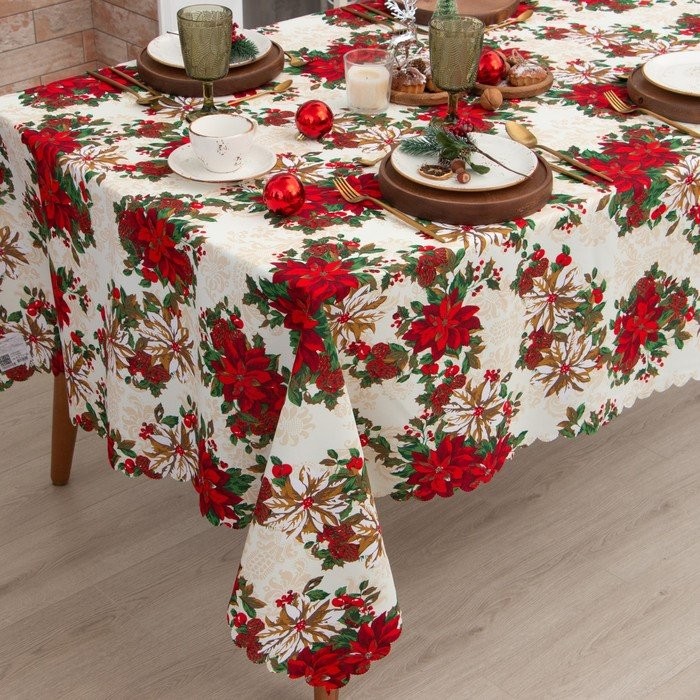 Скатерть Доляна «Новогодние украшения» 145×260 см, 100% п/э