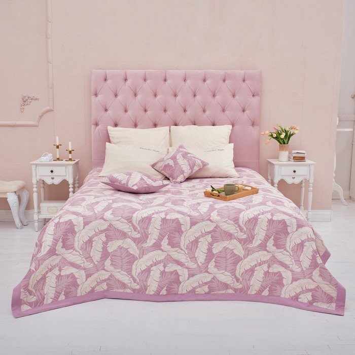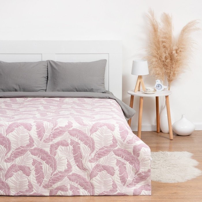 Покрывало хлопковое Этель «Перья» 220×240 см, цвет фиолетовый, 100% хлопок, 300гр/м2