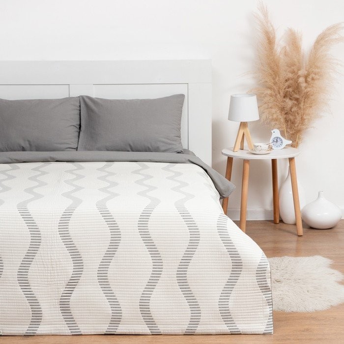 Покрывало хлопковое Этель «Волны» 180×240 см, цвет серый, 100% хлопок, 300гр/м2