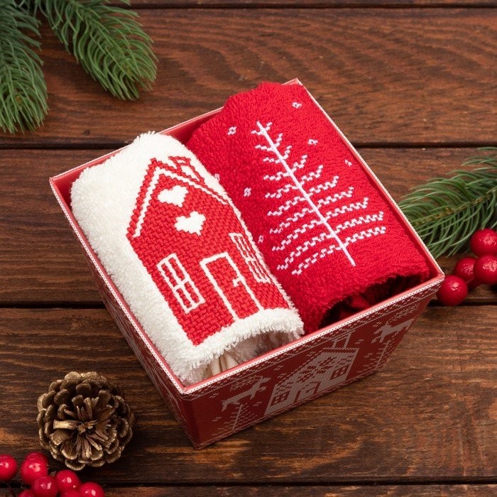 Набор полотенец «Happy new year» 30×60 см-2шт, 100% хлопок 340 г/м2