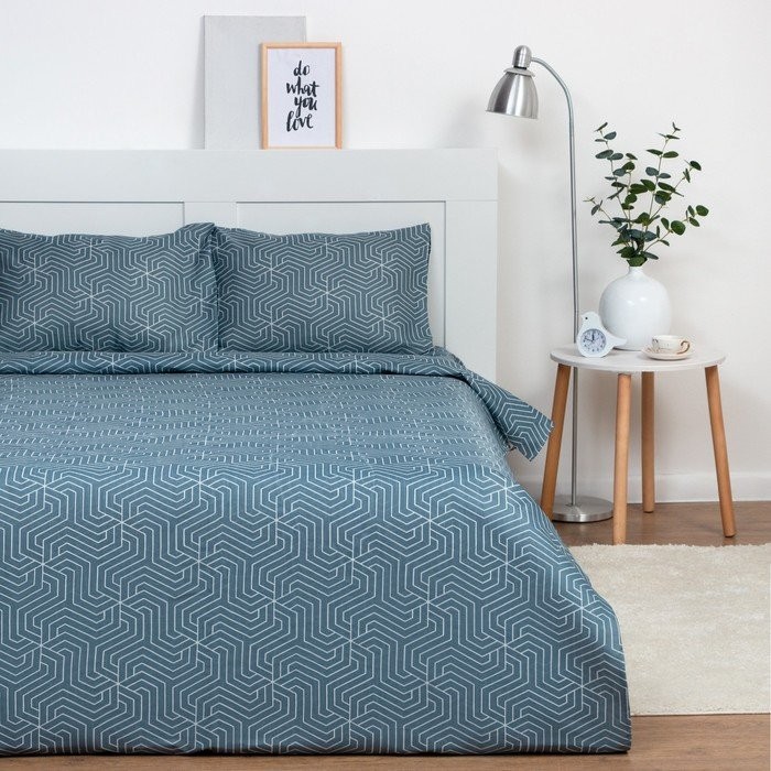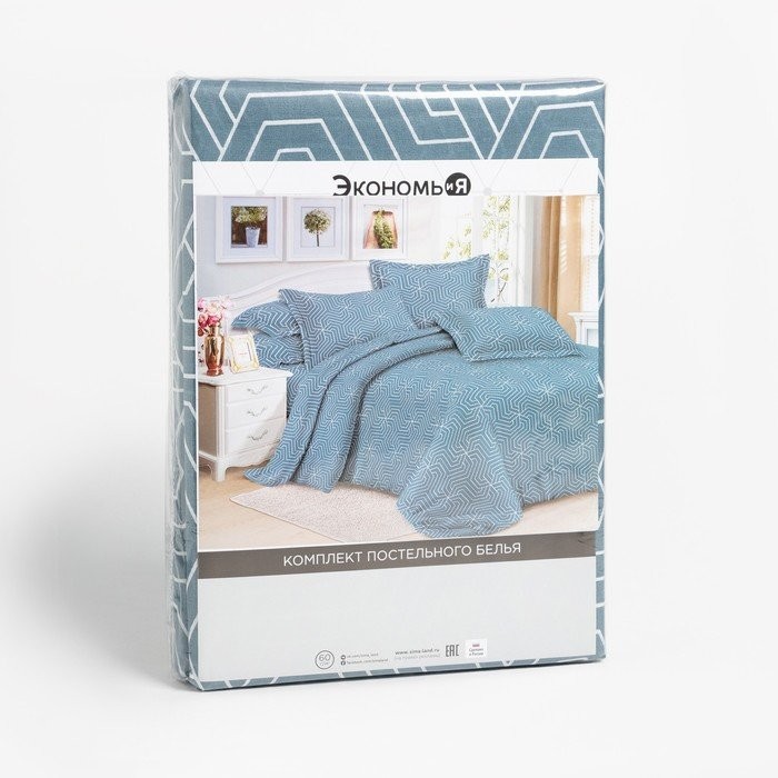 Постельное бельё 2сп Экономь и Я «Синяя геометрия» 173х215см, 175х214см, 50х70см-2 шт, 60г/м2 микрофибра