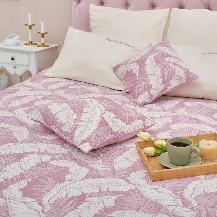 Покрывало хлопковое Этель «Перья» 180×240 см, цвет фиолетовый, 100% хлопок, 300гр/м2