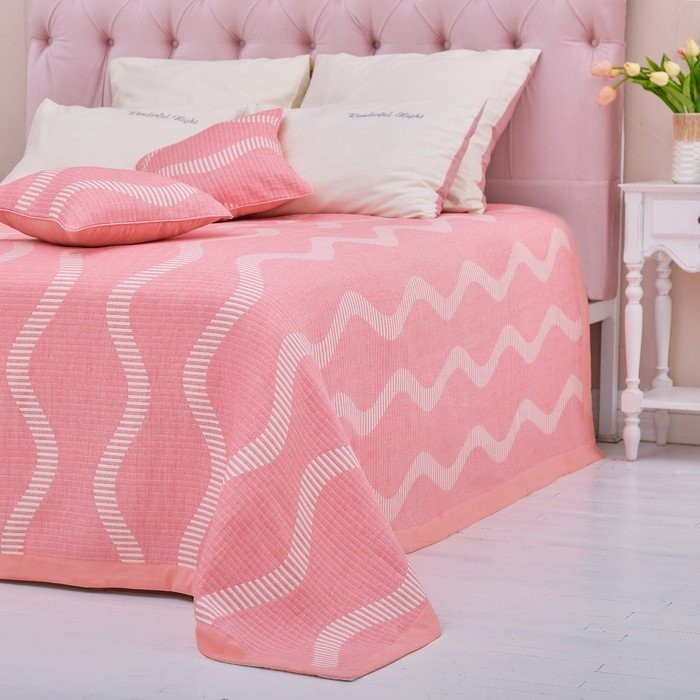 Покрывало хлопковое Этель «Волны» 200×240 см, цвет розовый, 100% хлопок, 300гр/м2