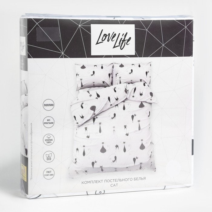Постельное бельё 1,5 сп LoveLife Cat пододеяльник 150×217 см+наволочка 50*70 см-1шт, поплин, 125г/м²