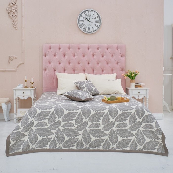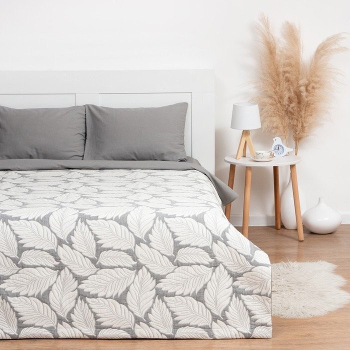 Покрывало хлопковое Этель «Листопад» 200×240 см, цвет серый, 100% хлопок, 300гр/м2