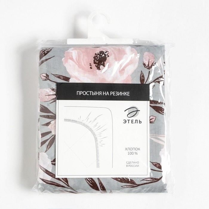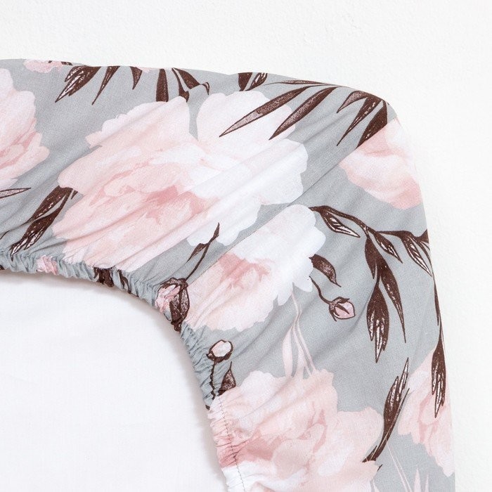 Простыня на резинке Этель 160х200×25 см, Peonies, 100% хлопок, поплин,125 г/м2