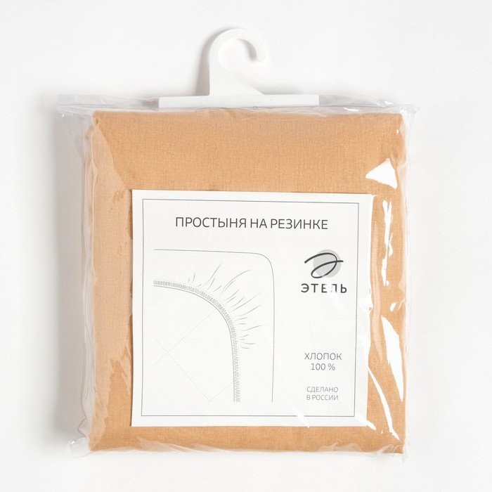 Простыня на резинке Этель 180х200×25, цвет бежевый, 100% хлопок, бязь 125г/м2