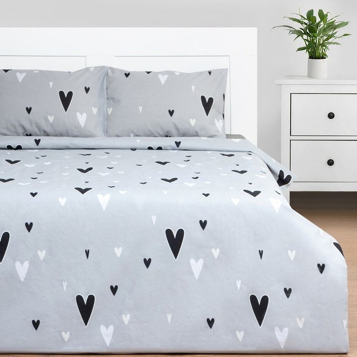 Комплект: пододеяльник и 2 наволочки «Сердечки» 143×215 см, 50×70 см — 2 шт, 100% хлопок