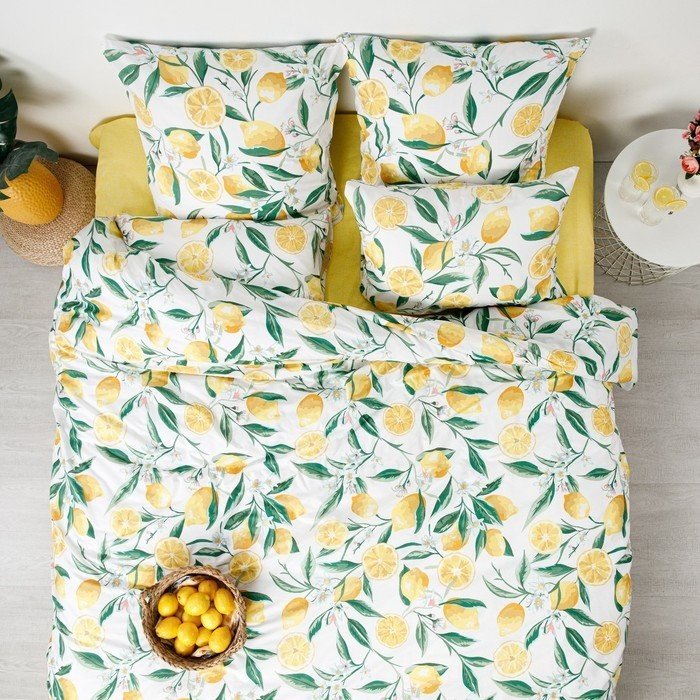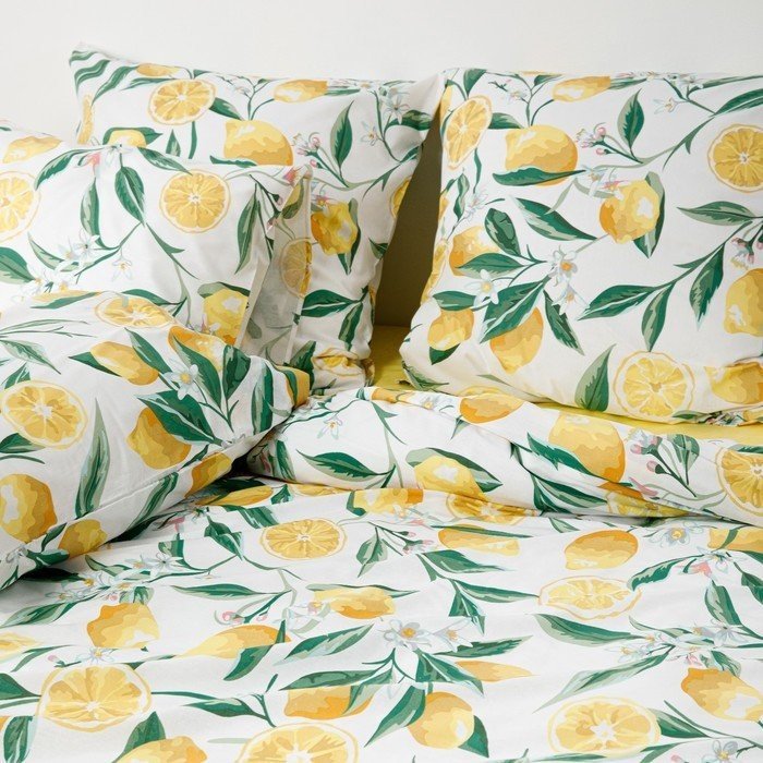 Постельное бельё 1,5сп Ночь Нежна Лимоны 145×215, 150×220, 70х70см 2шт, поплин 110г/м² 100% хлопок