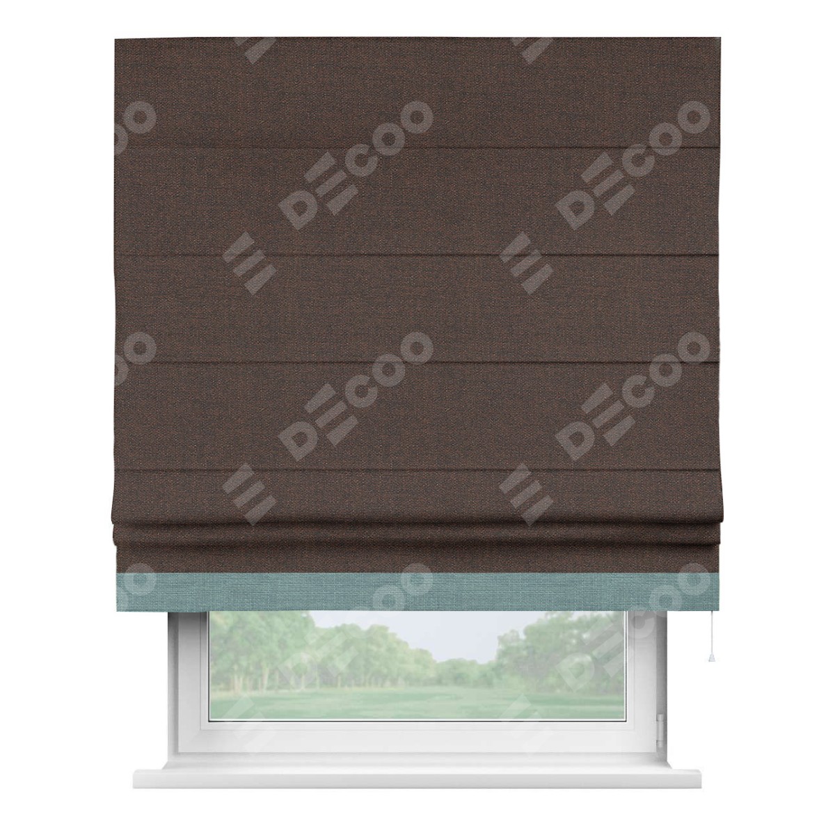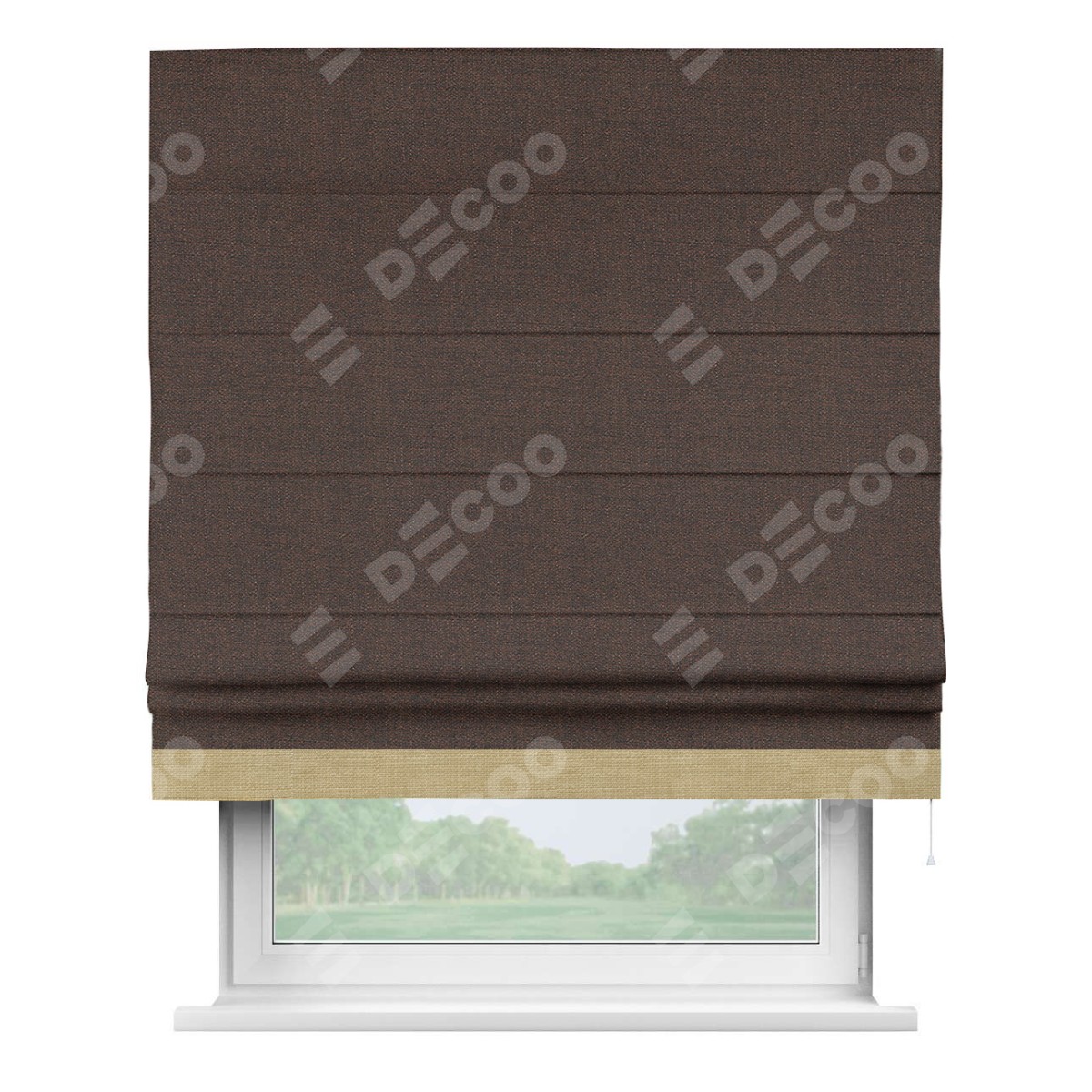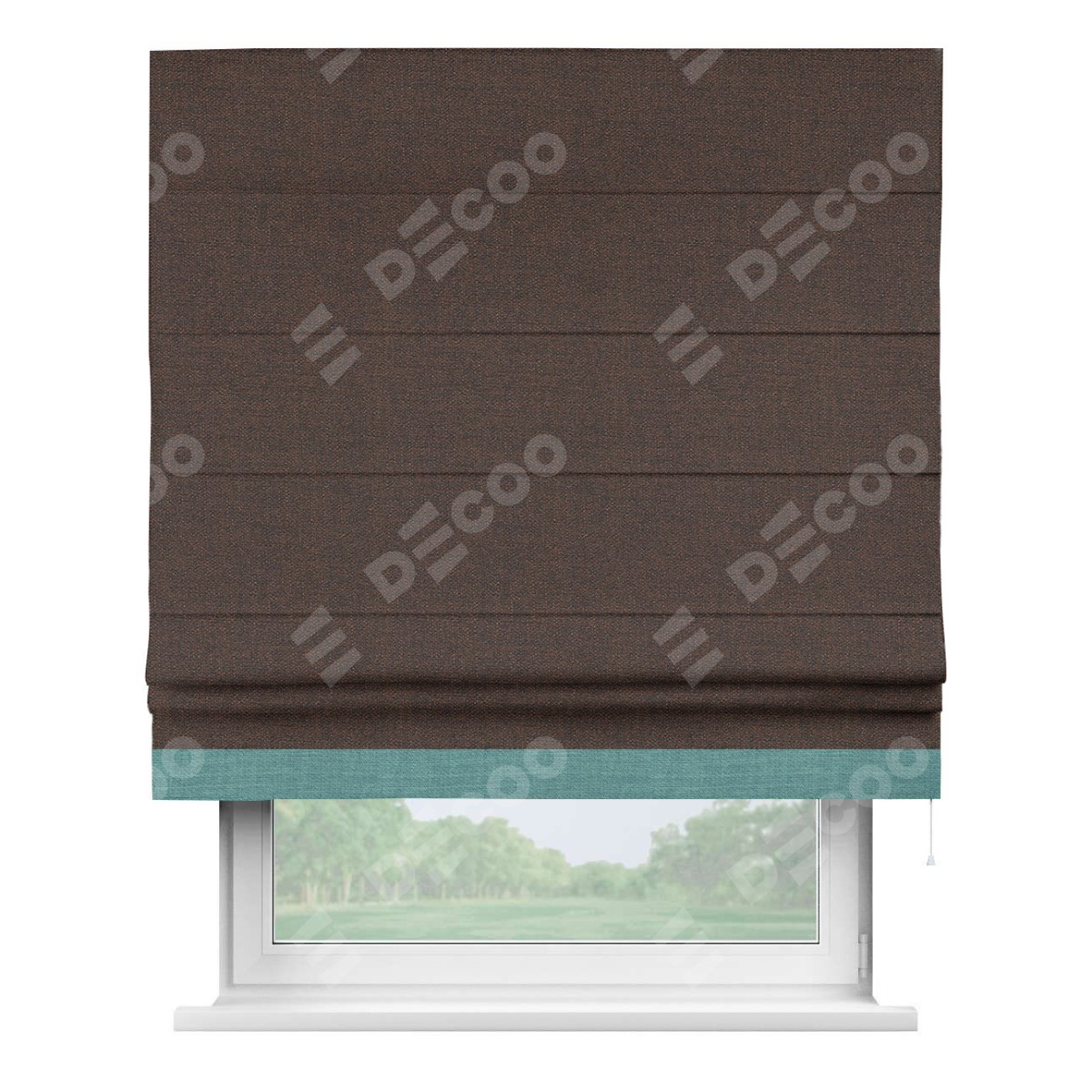 Римская штора производителя «Cortin», используется для проёма, пошита из ткани лён коричневый, артикул 53443. Отделка шторы кантом «Джестер», ткань для канта используется из льна разной расцветки на выбор. Имеет универсальный механизм и подходит для монтажа: на потолок, на стену и в нишу.