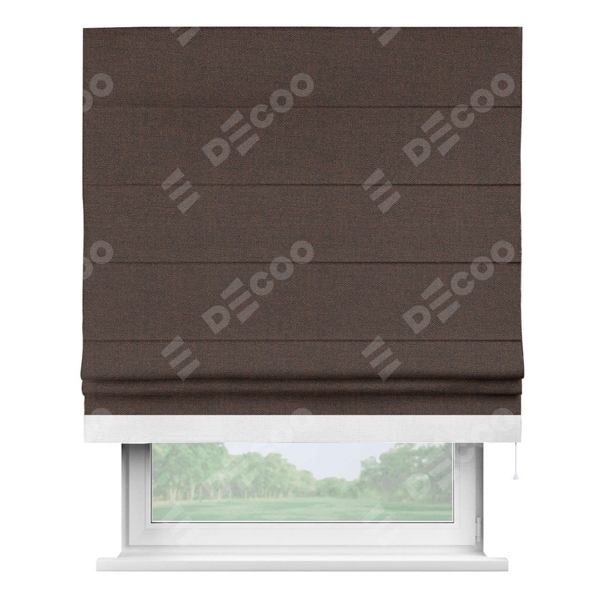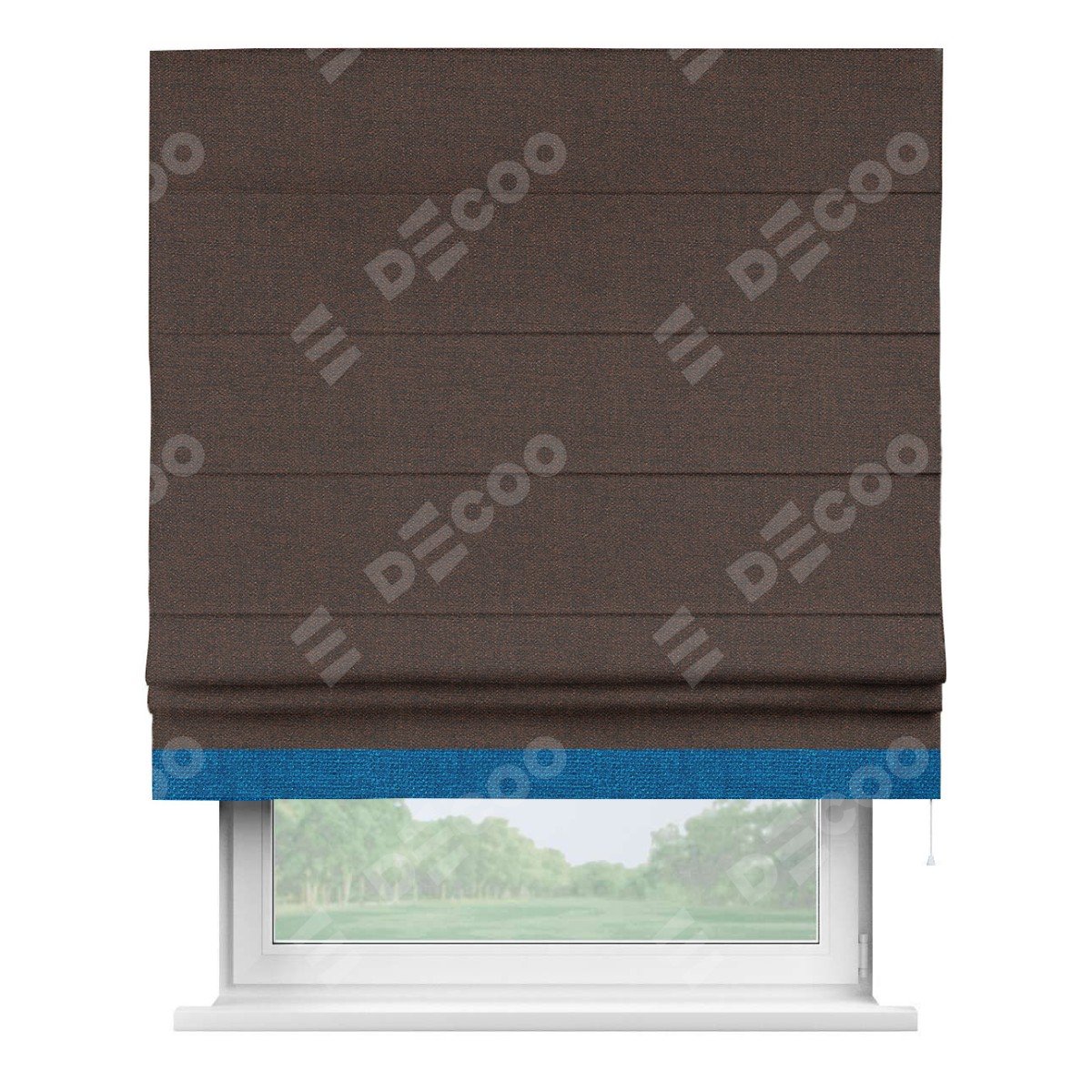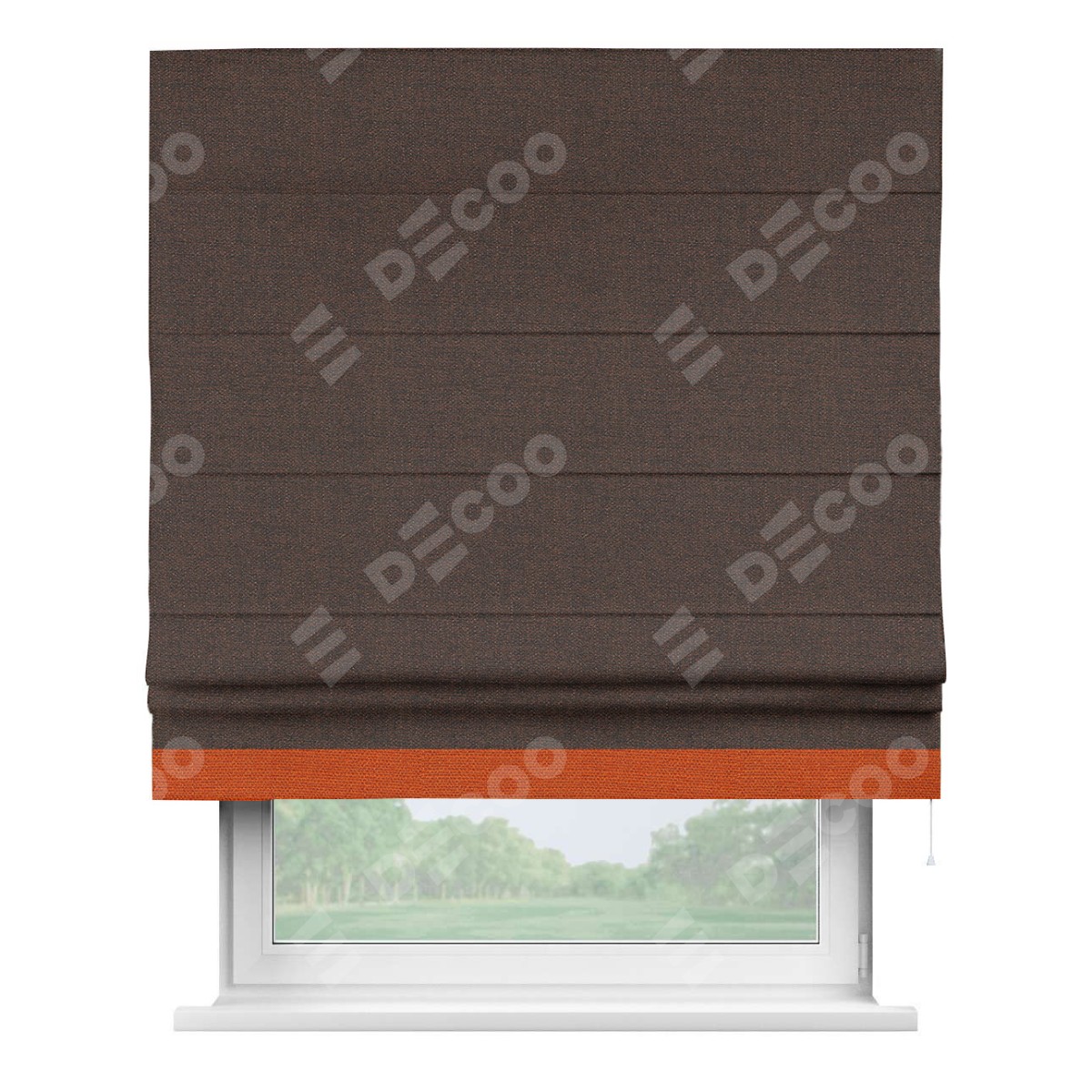 Римская штора производителя «Cortin», используется для проёма, пошита из ткани лён коричневый, артикул 53443. Отделка шторы кантом «Джестер», ткань для канта используется из льна разной расцветки на выбор. Имеет универсальный механизм и подходит для монтажа: на потолок, на стену и в нишу.