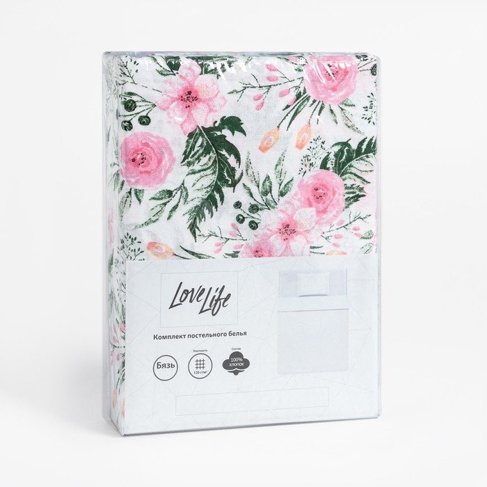 Постельное бельё LoveLife 1.5 сп «Цветы» 147×210, 150×215, 50×70 -1 шт, 100% хлопок, бязь 120 г/м2