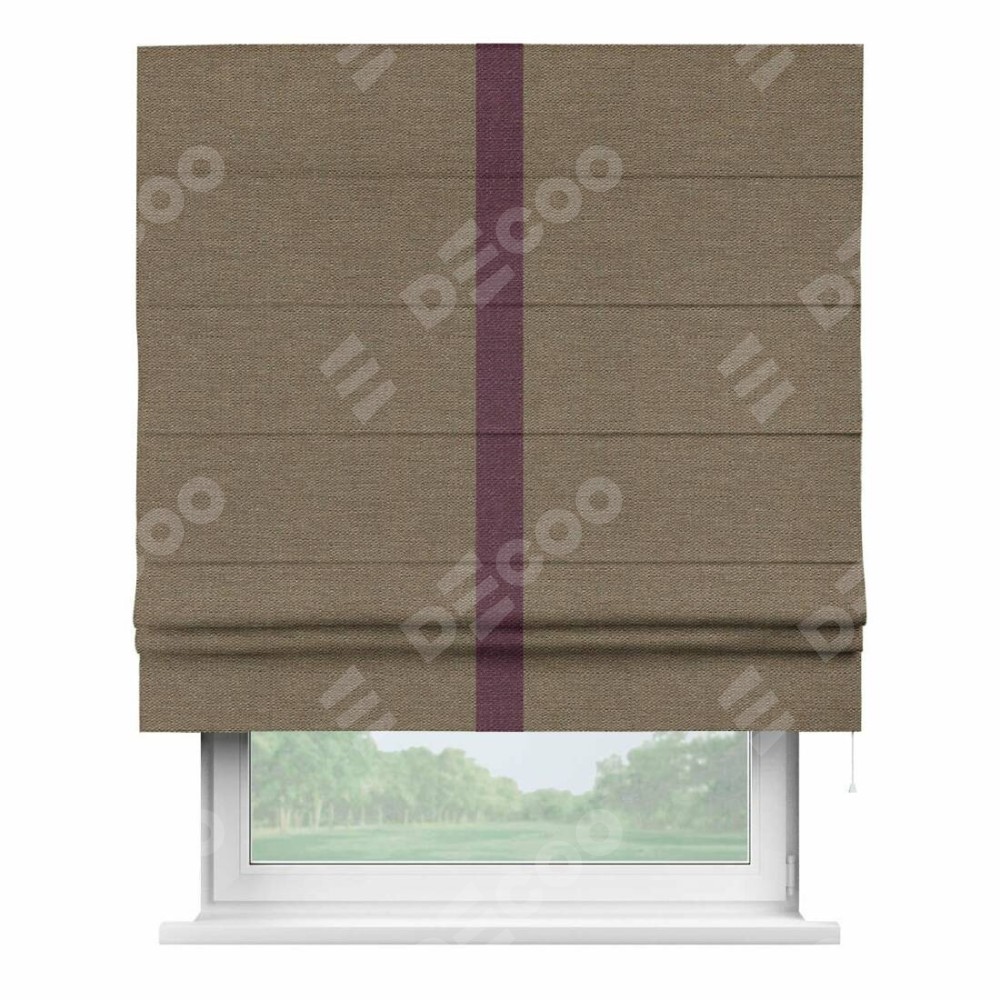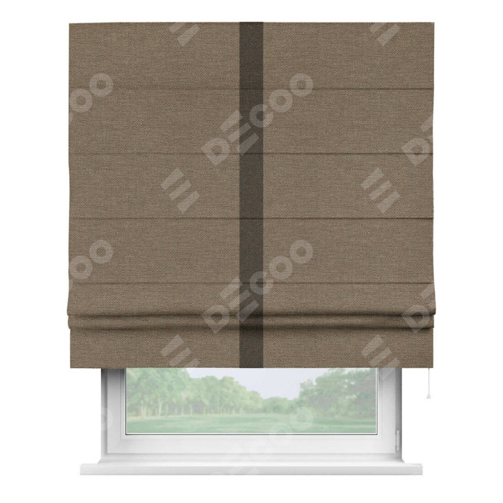 Римская штора «Кортин» с кантом Хайвэй, для проема, ткань лён светло-коричневый