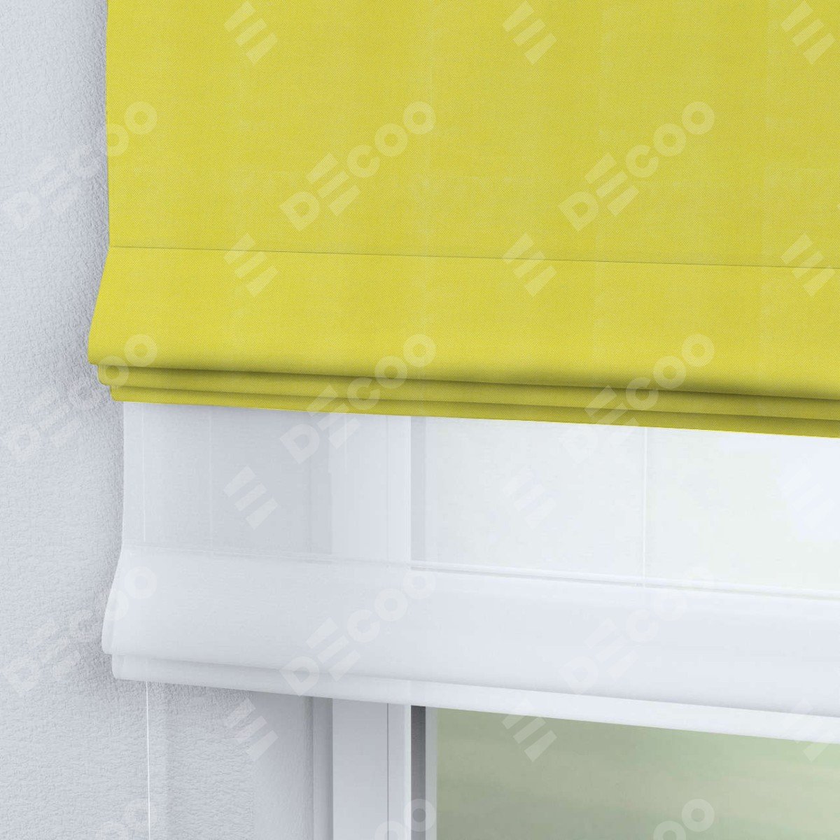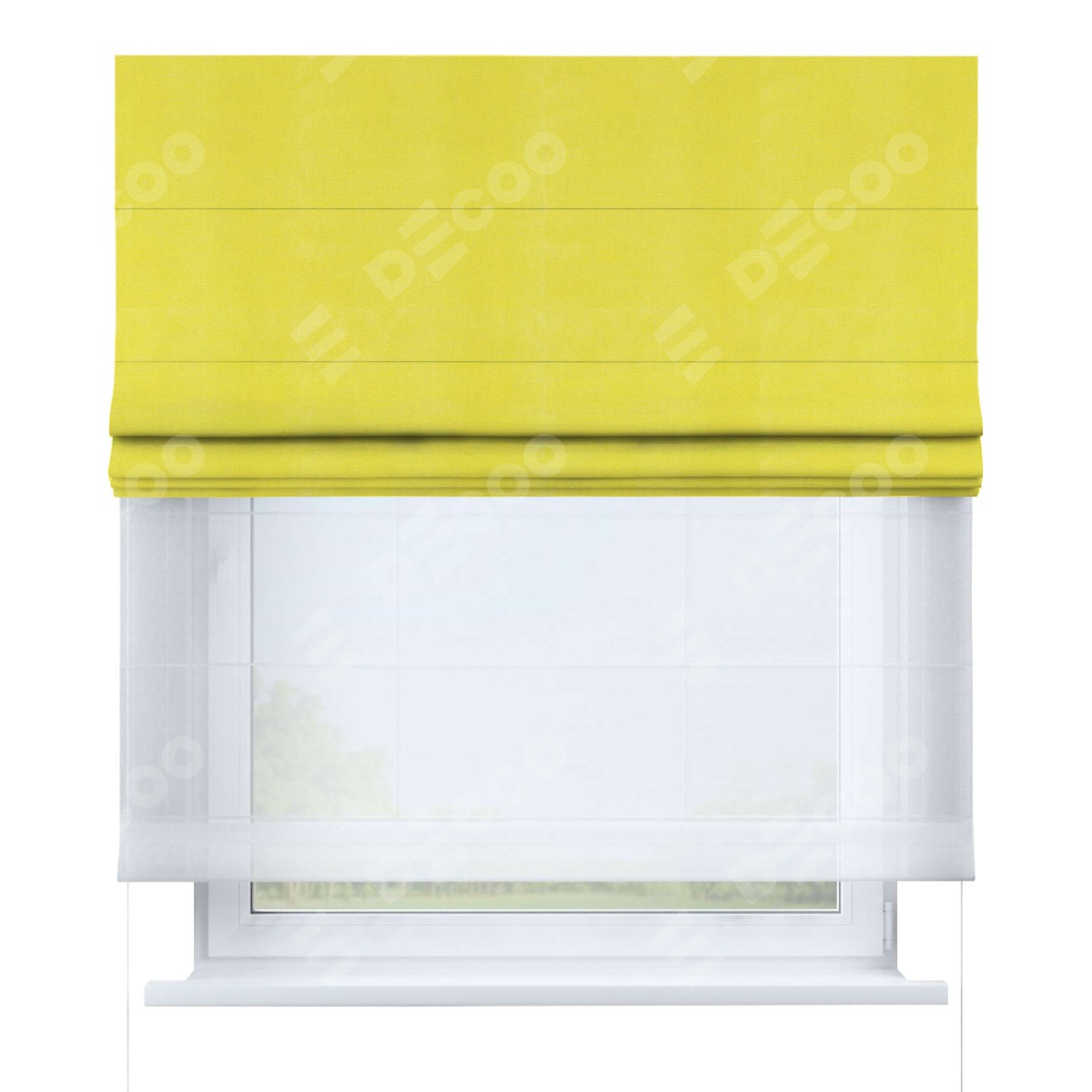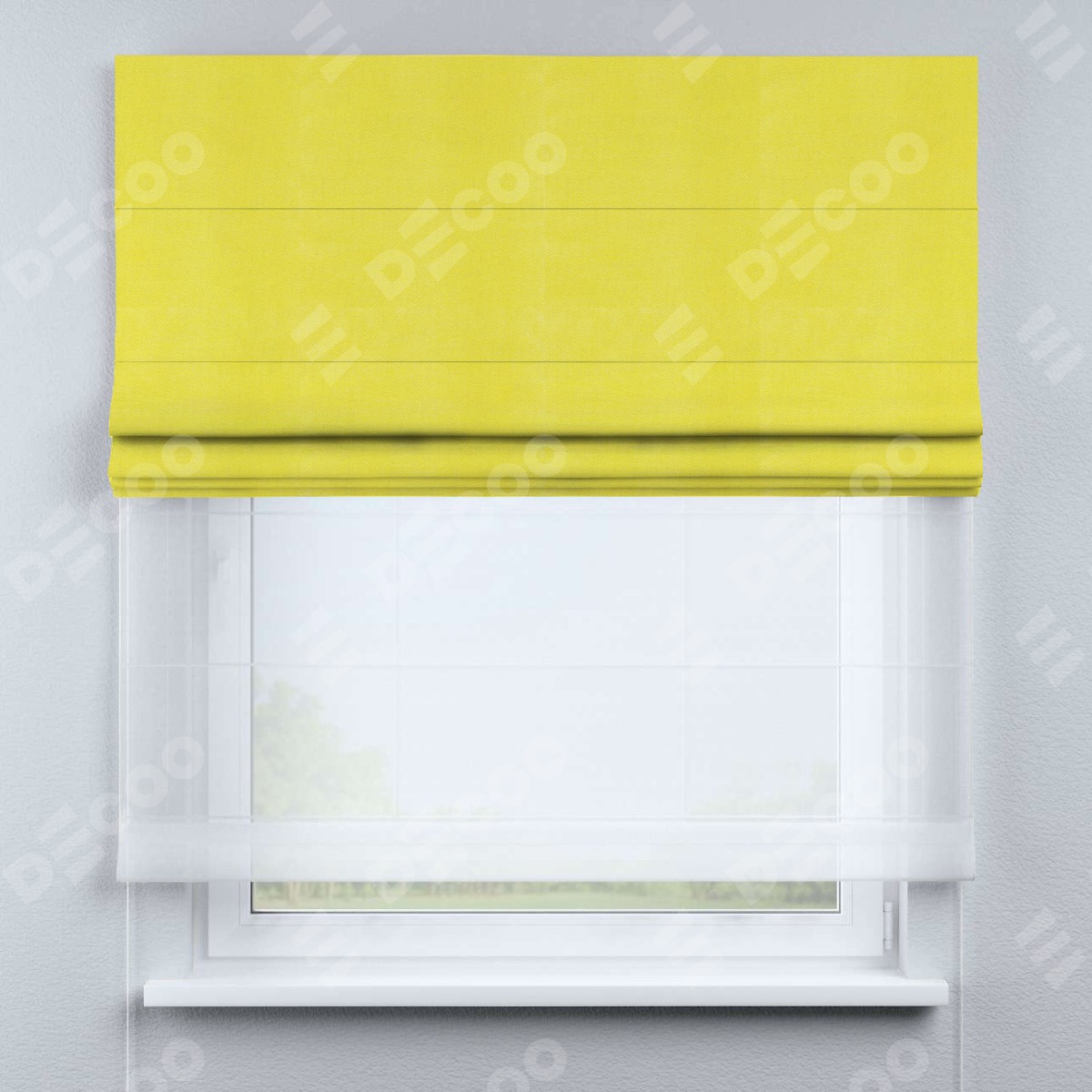 Римская штора день-ночь производителя «Cortin», используется для проёма, пошита из двух полотен, с лицевой стороны вельвет светло-желтый артикул 30997, вторая ткань тюль (по стандарту комплектуется тюль белого цвета артикул V-01). Имеет универсальный механизм и подходит для монтажа: на потолок, на стену и в нишу.