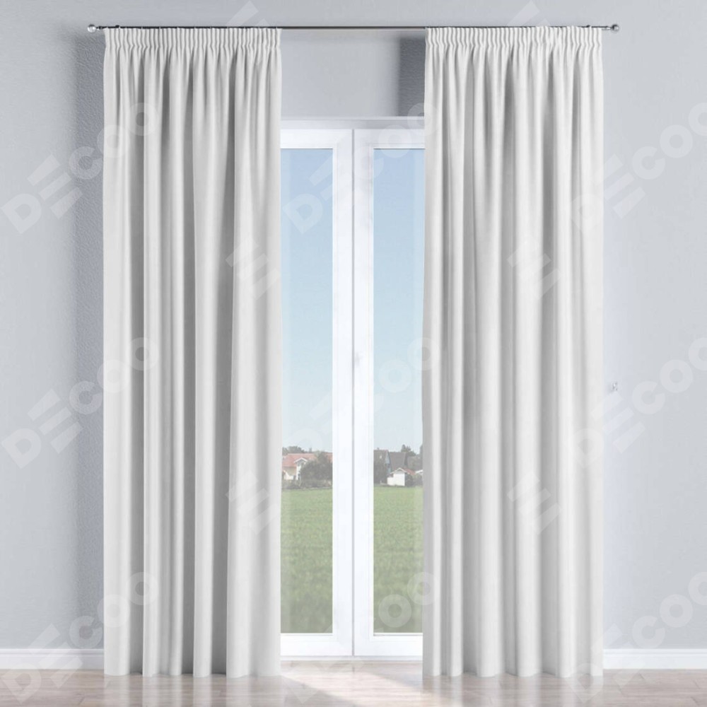Комплект прямых штор, от производителя «Cortin», пошиты из ткани вельвет белый, артикул ткани 10810. С изнаночной стороны в верхней части штор пристрачивается шторная лента с декоративными складками «Карандаш». Для создания элегантных складок прямые шторы шьются по стандарту с коэффициентом 1:2 (на 100 см. ширины проёма 200 см. ширины ткани).