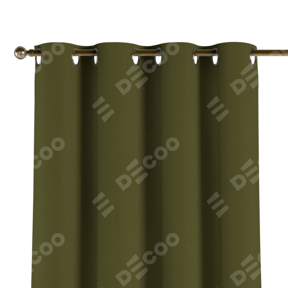 Комплект прямых штор, от производителя «Cortin», пошиты из ткани блэкаут однотонный зелёный, артикул ткани 81859. Данная модель пошита на люверсах, комплектуется на выбор круглым карнизом и подходит для монтажа на стену или потолок. Прямые шторы на люверсах шьются по стандарту с коэффициентом 1/2 (на 100 см. ширины проёма 200 см. ширины ткани), отличительным преимуществом данной модели является простой способ монтажа. Достаточно повесить ее на трубу и штора готова!