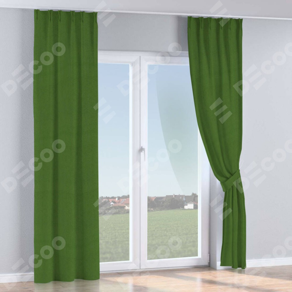 Комплект прямых штор, от производителя «Cortin», пошиты из ткани блэкаут однотонный зелёный перламутр, артикул ткани 81859п. С изнаночной стороны в верхней части штор пристрачивается шторная лента с декоративными складками «Кустик». Для создания элегантных складок прямые шторы шьются по стандарту с коэффициентом 1:2 (на 100 см. ширины проёма 200 см. ширины ткани).