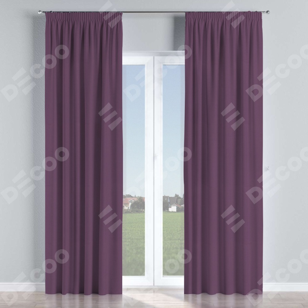 Комплект прямых штор, от производителя «Cortin», пошиты из ткани блэкаут однотонный фуксия, артикул ткани 88303. С изнаночной стороны в верхней части штор пристрачивается шторная лента с декоративными складками «Карандаш». Для создания элегантных складок прямые шторы шьются по стандарту с коэффициентом 1:2 (на 100 см. ширины проёма 200 см. ширины ткани).