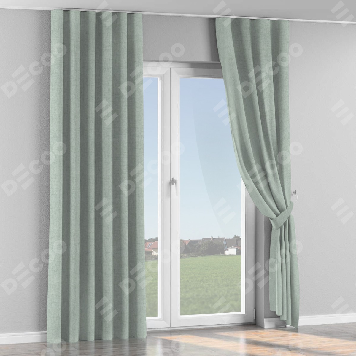 Комплект прямых штор, от производителя «Cortin», пошиты из ткани рогожка димаут серый, артикул ткани 80426. С изнаночной стороны в верхней части штор пристрачивается шторная лента с декоративными складками «Волна». Для создания элегантных складок прямые шторы шьются по стандарту с коэффициентом 1:2 (на 100 см. ширины проёма 200 см. ширины ткани).