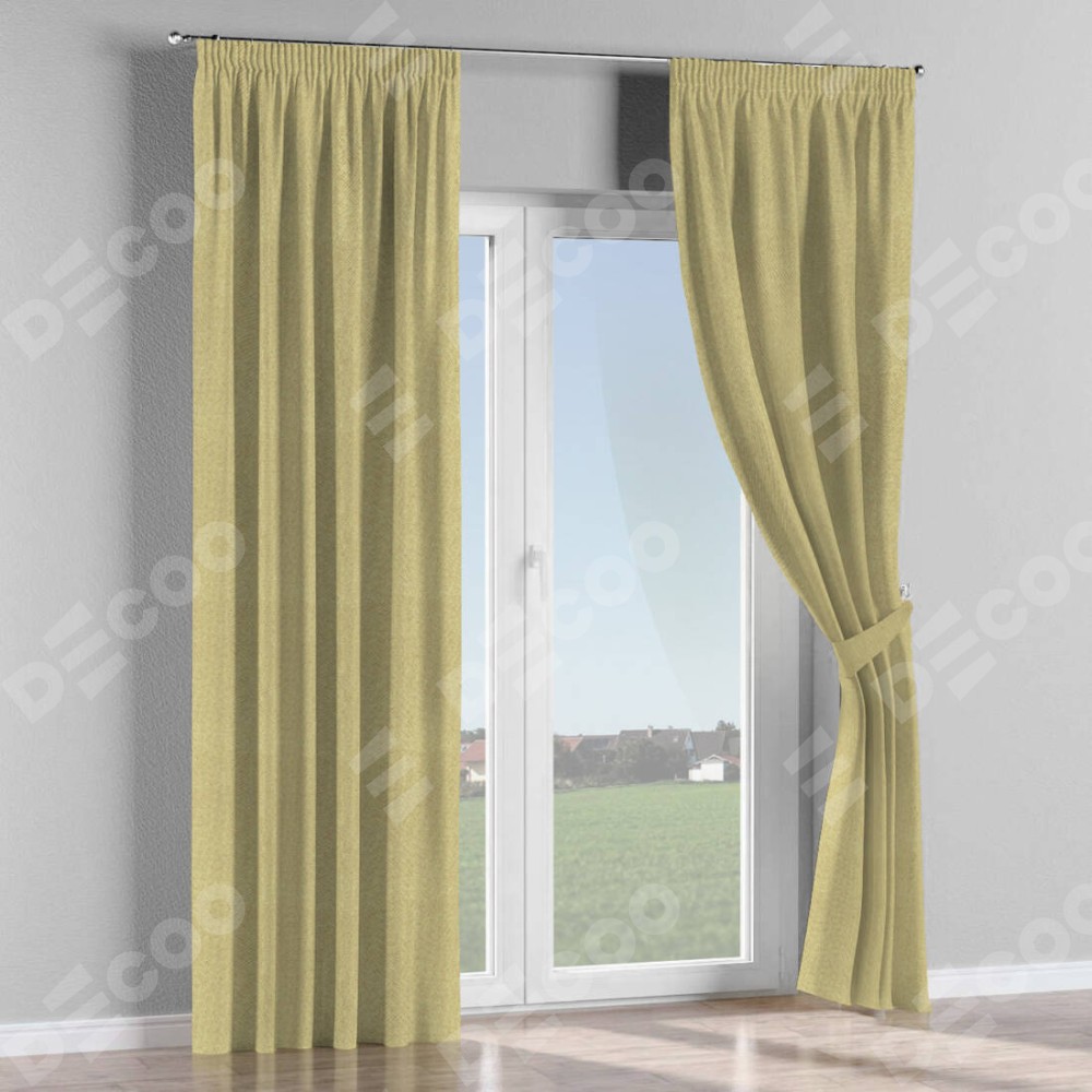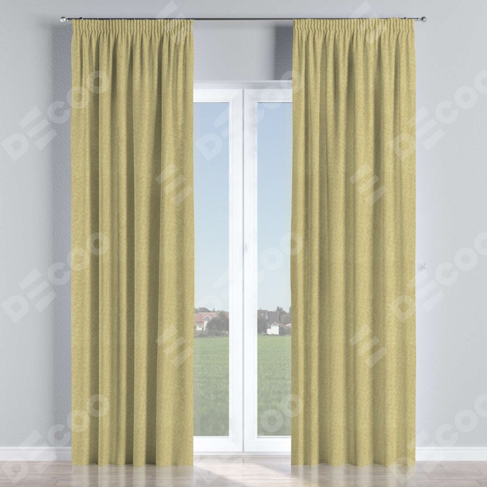 Комплект прямых штор, от производителя «Cortin», пошиты из ткани лён димаут песочный, артикул ткани 16239. С изнаночной стороны в верхней части штор пристрачивается шторная лента с декоративными складками «Карандаш». Для создания элегантных складок прямые шторы шьются по стандарту с коэффициентом 1:2 (на 100 см. ширины проёма 200 см. ширины ткани).