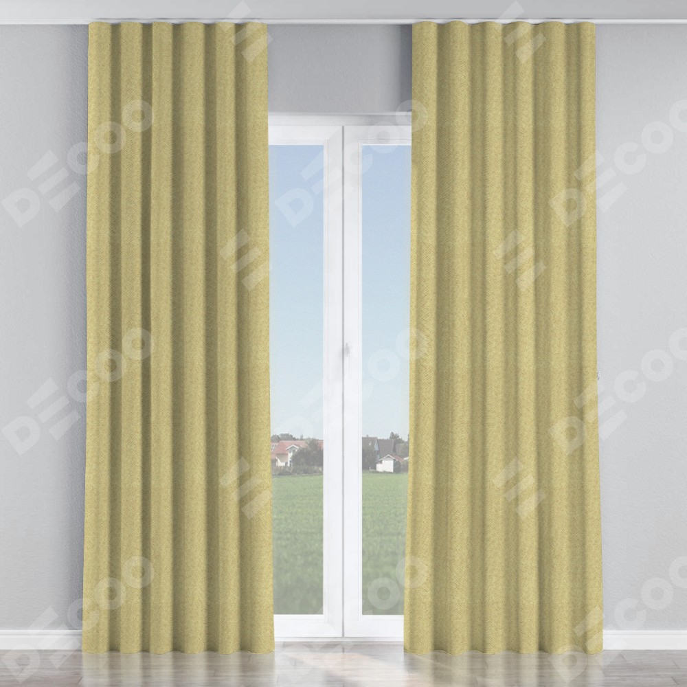 Комплект прямых штор, от производителя «Cortin», пошиты из ткани лён димаут песочный, артикул ткани 16239. С изнаночной стороны в верхней части штор пристрачивается шторная лента с декоративными складками «Волна». Для создания элегантных складок прямые шторы шьются по стандарту с коэффициентом 1:2 (на 100 см. ширины проёма 200 см. ширины ткани).