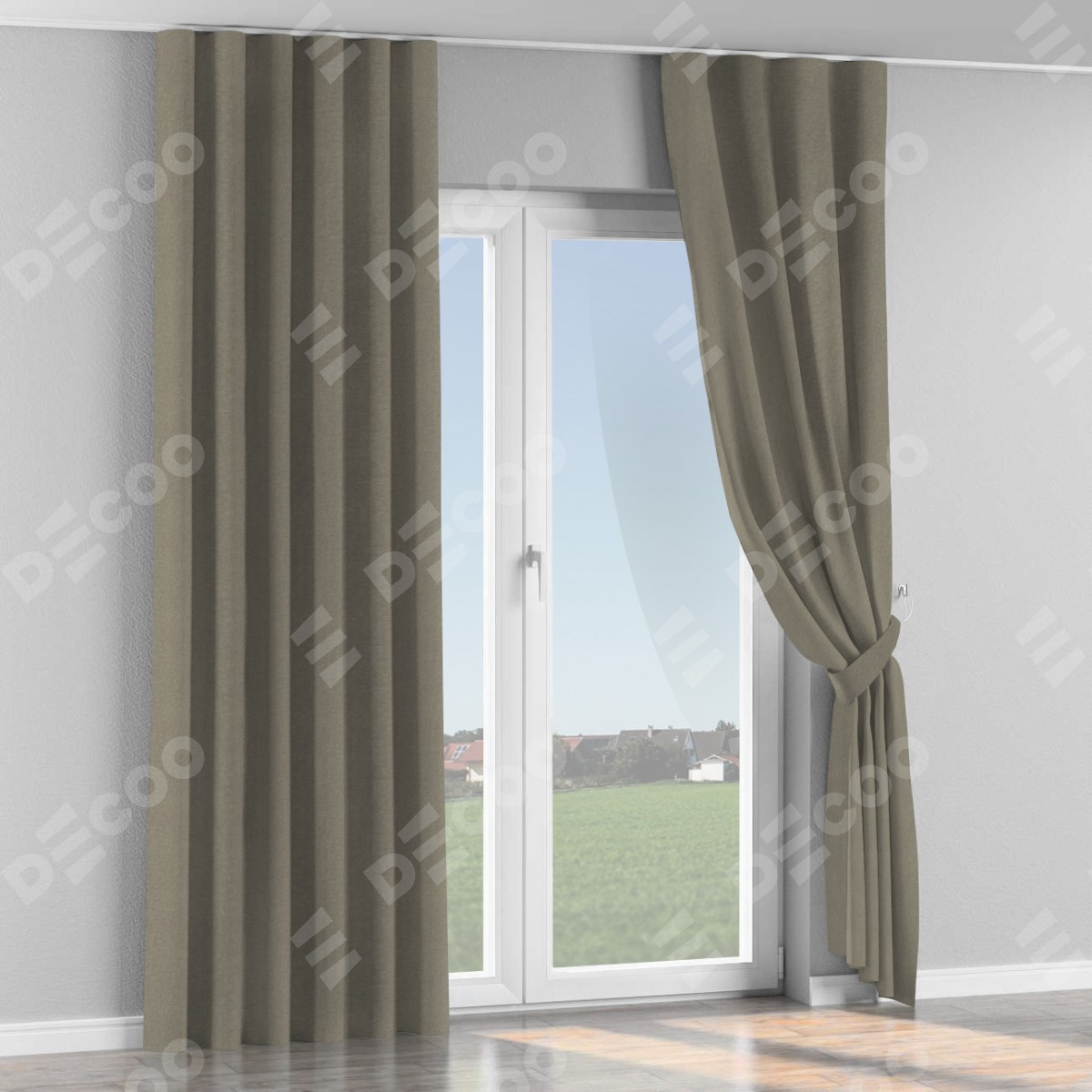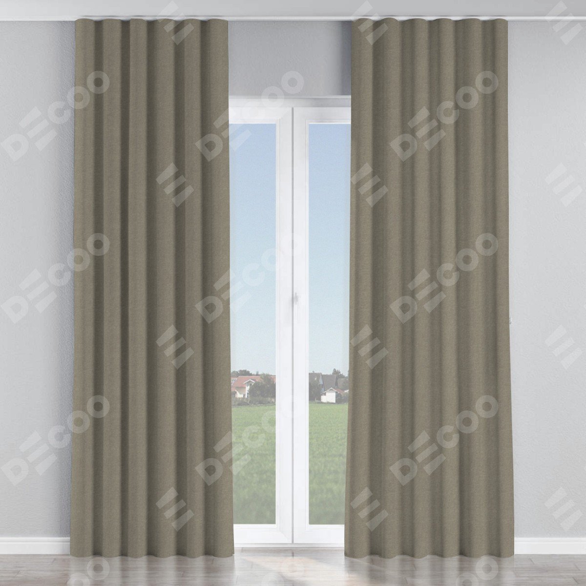 Комплект прямых штор, от производителя «Cortin», пошиты из ткани лён димаут серо-зелёный, артикул ткани 00003. С изнаночной стороны в верхней части штор пристрачивается шторная лента с декоративными складками «Волна». Для создания элегантных складок прямые шторы шьются по стандарту с коэффициентом 1:2 (на 100 см. ширины проёма 200 см. ширины ткани).