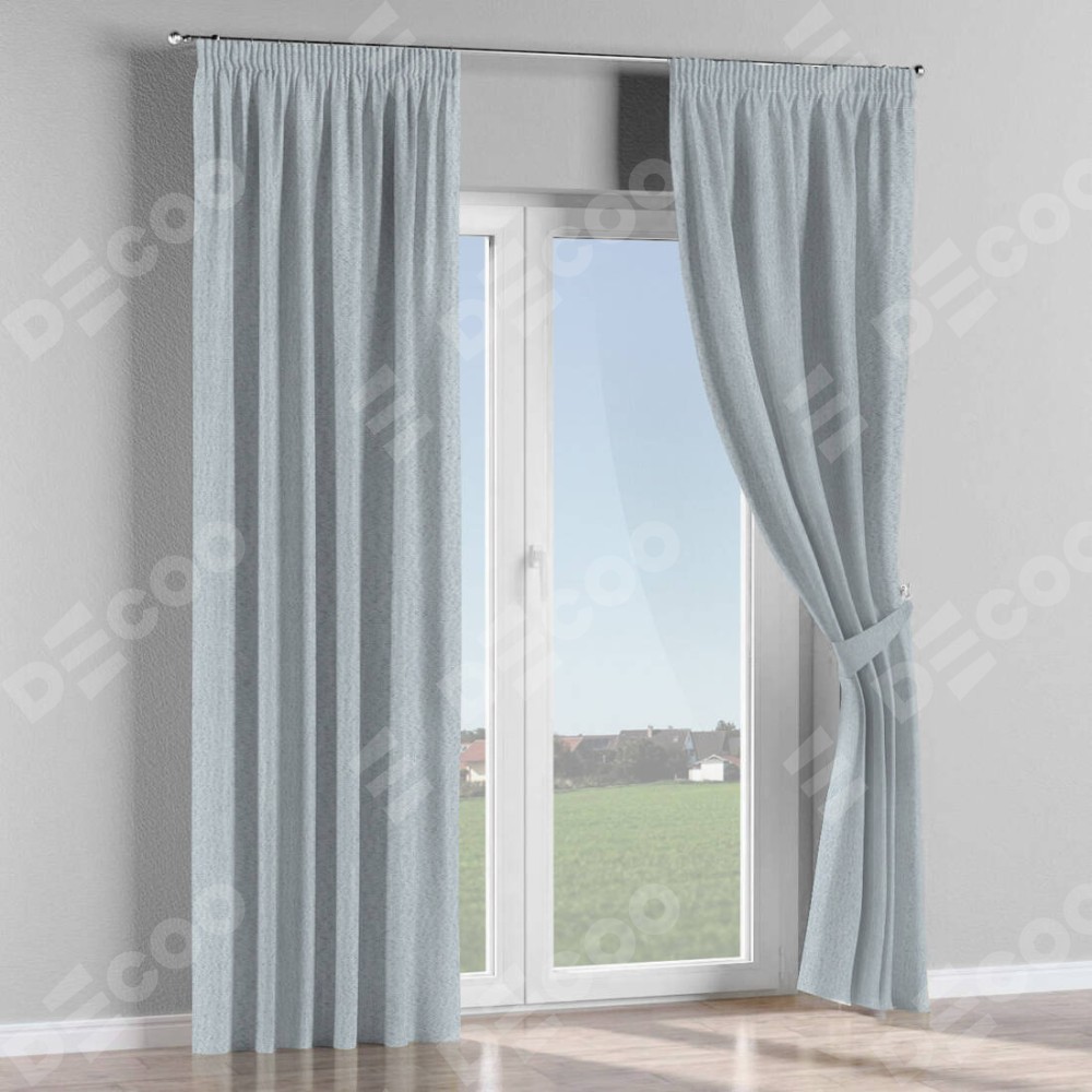 Комплект прямых штор, от производителя «Cortin», пошиты из ткани лён димаут серый, артикул ткани F3. С изнаночной стороны в верхней части штор пристрачивается шторная лента с декоративными складками «Карандаш». Для создания элегантных складок прямые шторы шьются по стандарту с коэффициентом 1:2 (на 100 см. ширины проёма 200 см. ширины ткани).