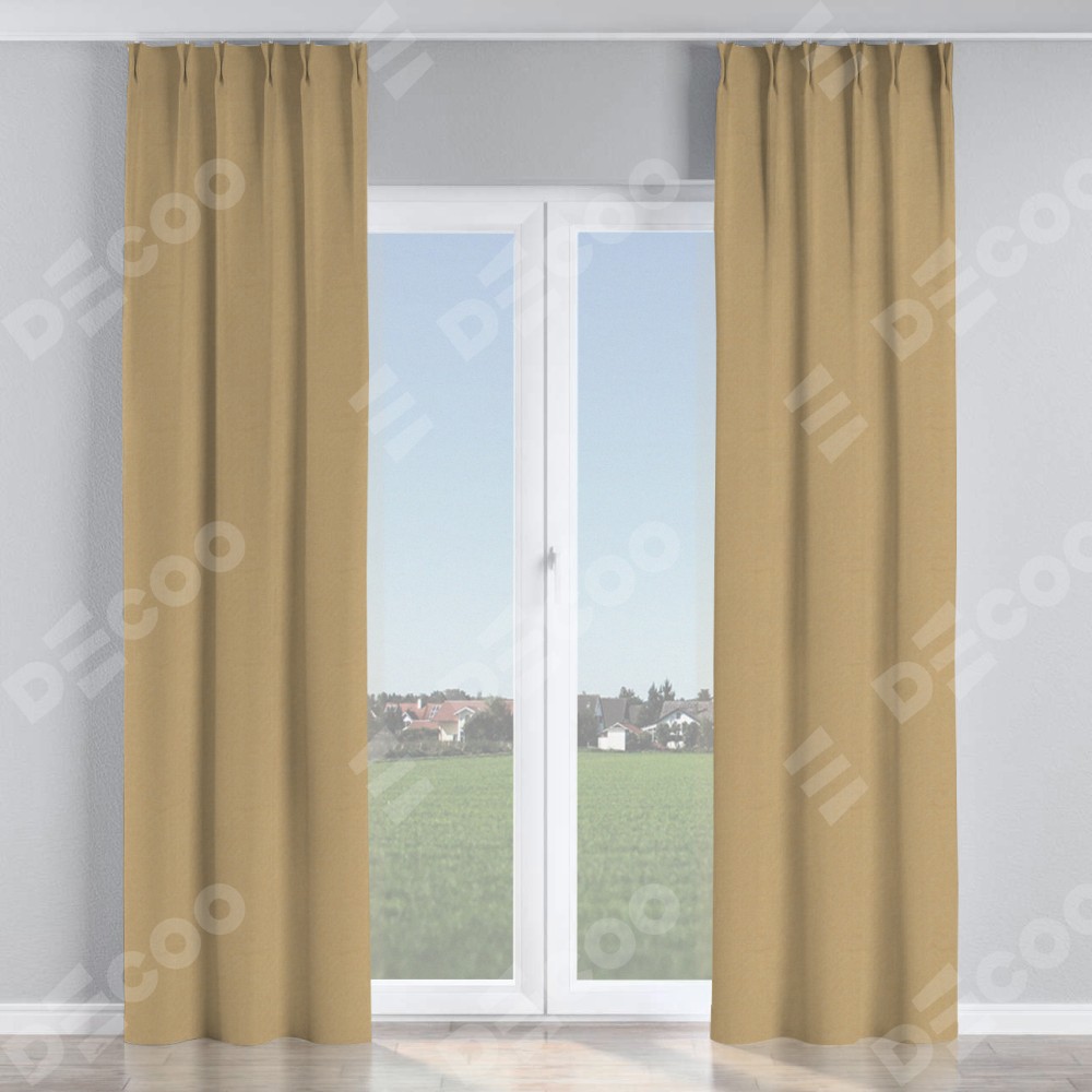 Комплект прямых штор, от производителя «Cortin», пошиты из ткани лён димаут тёмно-бежевый, артикул ткани 83037. С изнаночной стороны в верхней части штор пристрачивается шторная лента с декоративными складками «Кустик». Для создания элегантных складок прямые шторы шьются по стандарту с коэффициентом 1:2 (на 100 см. ширины проёма 200 см. ширины ткани).