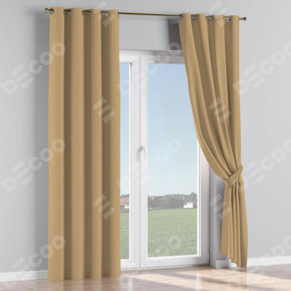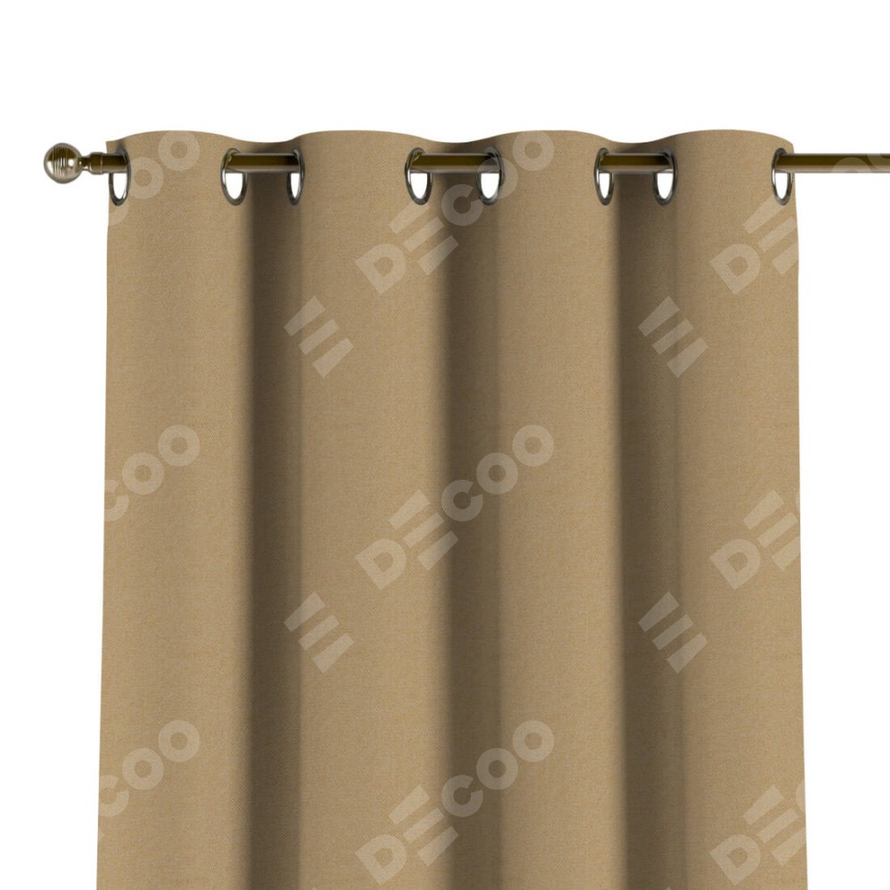 Комплект прямых штор, от производителя «Cortin», пошиты из ткани лён димаут тёмно-бежевый, артикул ткани 83037. Данная модель пошита на люверсах, комплектуется на выбор круглым карнизом и подходит для монтажа на стену или потолок. Прямые шторы на люверсах шьются по стандарту с коэффициентом 1/2 (на 100 см. ширины проёма 200 см. ширины ткани), отличительным преимуществом данной модели является простой способ монтажа. Достаточно повесить ее на трубу и штора готова!