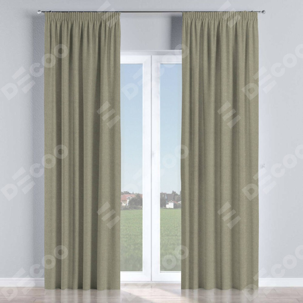 Комплект прямых штор, от производителя «Cortin», пошиты из ткани твид кофейный, артикул ткани 26412. С изнаночной стороны в верхней части штор пристрачивается шторная лента с декоративными складками «Карандаш». Для создания элегантных складок прямые шторы шьются по стандарту с коэффициентом 1:2 (на 100 см. ширины проёма 200 см. ширины ткани).