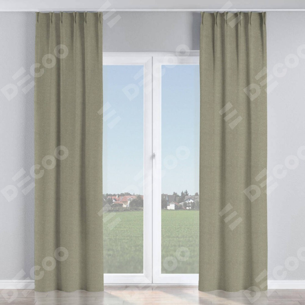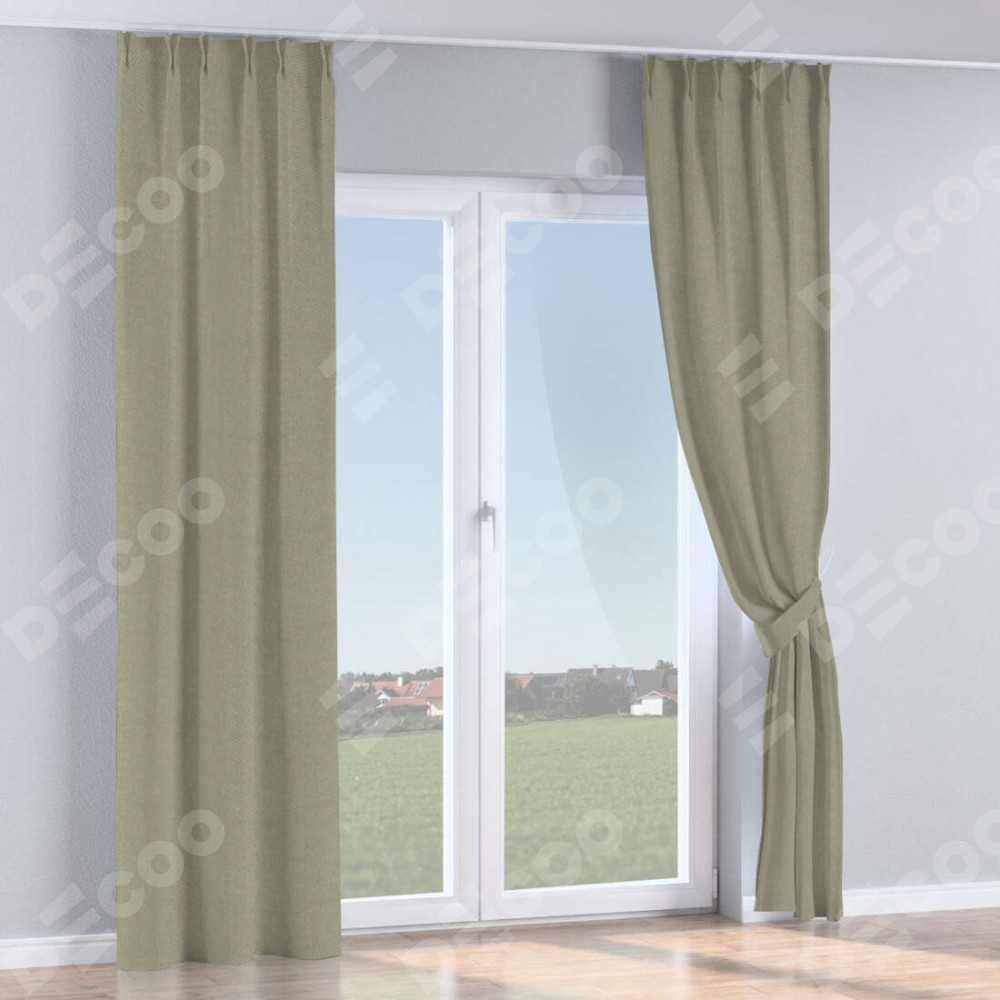 Комплект прямых штор, от производителя «Cortin», пошиты из ткани твид кофейный, артикул ткани 26412. С изнаночной стороны в верхней части штор пристрачивается шторная лента с декоративными складками «Кустик». Для создания элегантных складок прямые шторы шьются по стандарту с коэффициентом 1:2 (на 100 см. ширины проёма 200 см. ширины ткани).