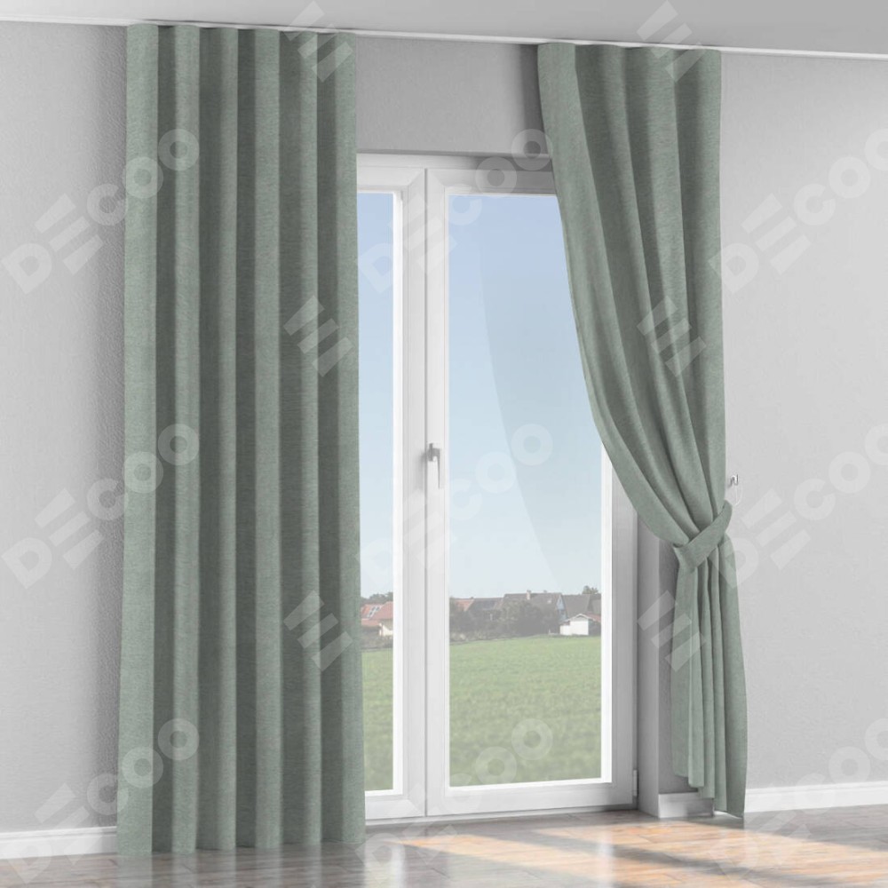 Комплект прямых штор, от производителя «Cortin», пошиты из ткани твид блэкаут светло-серый, артикул ткани 21576. С изнаночной стороны в верхней части штор пристрачивается шторная лента с декоративными складками «Волна». Для создания элегантных складок прямые шторы шьются по стандарту с коэффициентом 1:2 (на 100 см. ширины проёма 200 см. ширины ткани).